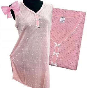 KOSZULA NOCNA BAWEŁNIANA BEZ RĘKAWÓW groszki piżama kokarda łosoś 52 54 6XL