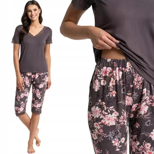 MIĘKKA PIŻAMA DAMSKA WISKOZOWA Z KORONKĄ SPODNIE 3/4 KOMFORTOWA MORAJ S PATT 1