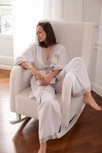 Te spodnie do spania z miękkiego, oddychającego muślinu to esencja relaksu w kobiecym, stylowym wydaniu. Lekkie, przewiewne i niezwykle przyjemne w dotyku — stworzone z myślą o spokojnych wieczorach, leniwy ...