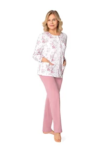 PIŻAMA DAMSKA 2XL RÓŻ W KWIATY ROZPINANA DŁUGI RĘKAW SPODNIE BAWEŁNA
