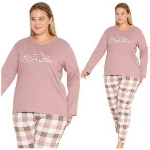 PIŻAMA DAMSKA BAWEŁNIANA MORELLA DŁUGI RĘKAW DŁUGIE SPODNIE KRATKA ELEGANCKA MODNA XL
