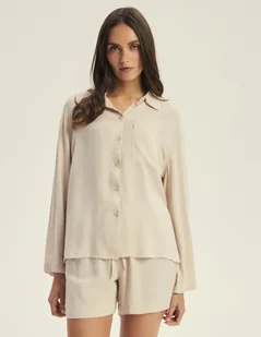 Piżama damska Corenso w jasnym beżu wpisuje się w estetykę spokojnych poranków i wieczornego wyciszenia. Jasna, neutralna kolorystyka podkreśla prostotę form...