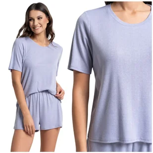 Koszulka z krótkim rękawem i okrągłym dekoltem miękko otula sylwetkę, nie krępując ruchów. Szorty z elastyczną, nieuciskającą gumką w pasie trzymają się idealnie na miejscu, dbając o Twój niezakłócony sen. Oddychalność i Lekkość: Struktura materiału sprzyja cyrkulacji powietrza, co czyni ten komplet idealnym wyborem na cieplejsze noce oraz jako stylowy strój domowy na leniwe poranki. Dlaczego to idealny wybór dla Ciebie? Piżama Moraj z kolekcji Pointelle to propozycja dla kobiet, które szukają czegoś więcej niż zwykłej bawełny.