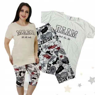 PIŻAMA DAMSKA GRAFFITI komplet rybaczki krótki rękaw BAWEŁNA 46 48 3XL PLUS SIZE | 95% BAWEŁNA | 5% ELASTAN | STYLOWA I WYGODNA Ten bawełniany komplet piżamo...