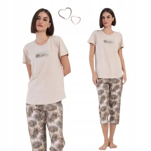 PIŻAMA DAMSKA VIENETTA komplet luźna rybaczki krótki rękaw BAWEŁNA 42 44 XL