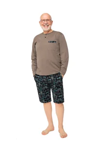PIŻAMA MĘSKA 3XL DŁUGI RĘKAW KRÓTKIE SPODENKI SZORTY BAWEŁNIANA OLIWKOWA