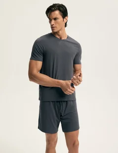 Model Adept z kolekcji Esotiq Homme stawia na prostotę i funkcjonalność, które sprawdzają się każdego dnia. Stonowana, szara kolorystyka oraz jednolity design tworzą spokojny, nowoczesny zestaw do snu i domowego wypoczynku. To piżama zaprojektowana z myślą o mężczyznach, którzy cenią niewymuszoną estetykę, wygodę i jakość materiałów. Komplet został wykonany z wysokiej jakości mieszanki modalu, bawełny i elastanu, dzięki czemu jest wyjątkowo miękki, oddychający i elastyczny. T-shirt z krótkim rękawem i klasycznym, okrągłym dekoltem dobrze układa się na sylwetce i nie krępuje ruchów.