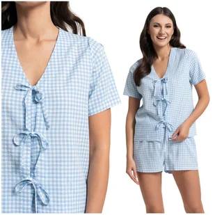 UROCZA PIŻAMA DAMSKA DWUCZĘŚCIOWA W KRATKĘ KRÓTKI RĘKAW SZORTY MORAJ UROCZA PIŻAMA DAMSKA DWUCZĘŚCIOWA W KRATKĘ KRÓTKI RĘKAW SZORTY MORAJ Poczuj lekkość i dziewczęcy urok w piżamie, która zachwyca unikalną strukturą materiału. Ten dwuczęściowy komplet to połączenie nowoczesnego designu z klasycznym motywem drobnej kratki, stworzone dla kobiet, które szukają w bieliźnie nocnej czegoś więcej niż standardowej gładkiej dzianiny. Fakturowana Tkanina: Wyjątkowa, trójwymiarowa struktura materiału nie tylko wygląda stylowo, ale przede wszystkim zapewnia doskonałą cyrkulację powietrza. Tkanina jest niezwykle miła w dotyku, lekka i "oddychająca", co gwarantuje komfortowy sen bez uczucia przegrzania.