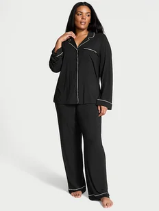 Wygodny zestaw z bluzką zapinaną na guziki i spodniami ze sznureczkiem w talii z naszego mięciutkiego, rozciągliwego modalu. W skład piżamy wchodzą: bluzka i spodnie Luźny krój Długi rękaw, góra zapinana na guziki z przodu, sięga do bioder Kieszeń na piersi Dekoracyjna lamówka Spodnie z elastyczną talią ze sznureczkiem Długość wewnętrznego szwu w spodniach w poszczególnych rozmiarach: Short: 71cm, Regular: 76cm, Long:
