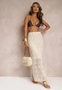 Beżowa Ażurowa Spódnica z Rozcięciem Penelapi