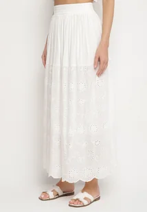 Biała Bawełniana Spódnica Ażurowa Rozkloszowana Divora