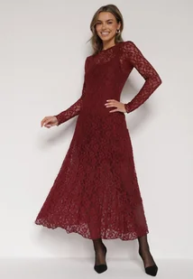 Bordowa Koronkowa Sukienka Taliowana z Odkrytymi Plecami Talifera