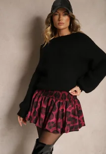 Bordowo-Czarna Bufiasta Spódnica o Rozkloszowanym Kroju Balloon z Szeroką Gumką w Pasie Hetitha