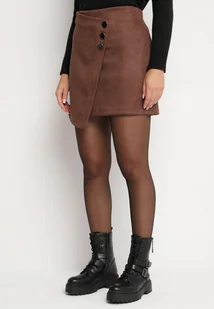 Brązowa Kopertowa Spódnica o Trapezowym Kroju Ozdobiona Guzikami Niloria