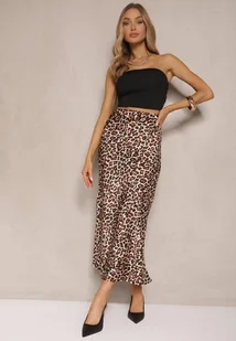Brązowa Spódnica High Waist ze Zwierzęcym Printem i Gumką w Talii Dimella