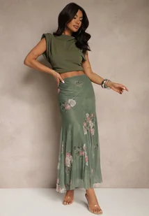 Ciemnozielona Spódnica w Kwiatowy Wzór o Rozkloszowanym Kroju Efrirene