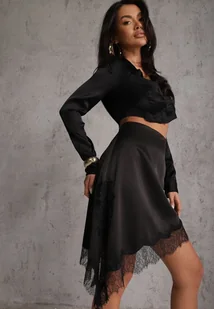 Czarna Asymetryczna Spódnica z Satyny Zdobiona Koronką Katarva