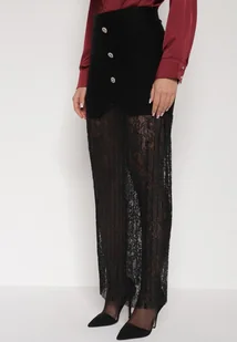 Czarna Dzianinowa Spódnica z Wiskozą Zdobiona Koronką i Guzikami Sewora