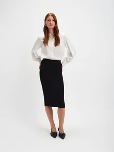Spódnica damska Top Secret elegancka ołówkowa. Elegancka, długa spódnica damska za kolano w wersji ołówkowej, która podkreśla smukłość oraz walory kobiecej sylwetki. Posiada ona praktyczną szeroką gumkę w talii oraz ozdobne pionowe prążki na całości, które dodają jej wyjątkowego uroku oraz niepowtarzalnego stylu. Wykonana ona została z elastycznej oraz przyjemnej w dotyku dzianiny, będąc doskonałym uzupełnieniem zarówno stylizacji z elegancką koszulą, jak i również bluzką. Jest ona szczególnie polecana kobietom ceniącym sobie nienaganną elegancję oraz niecodzienny szyk.