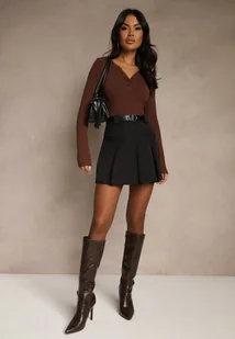 Czarna Spódnica z Wiskozą o Rozkloszowanym Kroju z Imitacją Kieszeni Talireina
