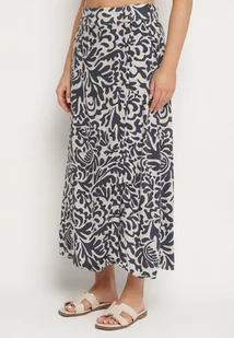 Granatowa Wiskozowa Spódnica o Rozkloszowanym Kroju z Kieszeniami Kosaretia