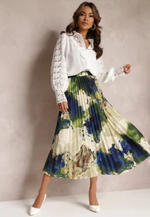 Granatowo-Zielona Spódnica z Plisowanej Tkaniny z Gumką w Talii Symbiote
