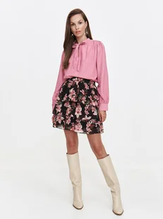 Spódnica damska Top Secret z barwnym kwiecistym nadrukiem. Rozkloszowana spódnica damska o długości do połowy uda, z praktyczną szeroką gumką w talii. Posiada ona na całości efektowne falbany, będąc wykonaną z delikatnego oraz przyjemnego w dotyku materiału z efektownym kwiecistym nadrukiem na całości. Pod spodem ma ona praktyczną podszewkę i sprawdzi się zarówno jako element stroju z elegancką klasyczną koszulą, jak i również ciekawą bluzką. Jest ona szczególnie polecana kobietom ceniącym sobie własny styl oraz wygodę podczas użytkowania.
