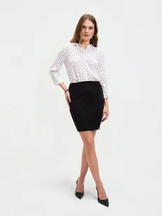 Mini spódnica z rozcięciem to elegancki i uniwersalny element garderoby, wykonany w klasycznym czarnym kolorze. Dzięki mieszance tkanin, spódnica zapewnia komfort noszenia, miękkość i elastyczność. Za sprawą dopasowanego kroju, subtelnie podkreśla sylwetkę, a rozcięcie dodaje jej nowoczesnego charakteru. Model spódnicy stanowi doskonały wybór na wiele okazji, zarówno formalnych, jak i mniej oficjalnych. Dzięki klasycznemu fasonowi i kolorze może być łatwo łączona z różnymi stylizacjami.