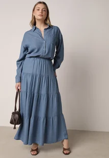 Niebieska Rozkloszowana Spódnica z Lyocellu z Wysokim Stanem i Falbanami Emorithia