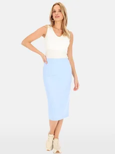 Ołówkowa spódnica damska z tkaniny wiskozowej Jednym z najpopularniejszych modeli w naszej wiosenno-letniej kolekcji jest błękitna ołówkowa spódnica damska w gumę. Ważnym atrybutem tego modelu jest mięsisty materiał z mieszanki wiskozy i nylonu, bardzo ładnie układający się na figurze dzięki zawartości włókien elastycznych. W dolnej części, z tyłu, zaprojektowano wysokie rozcięcie ułatwiające stawianie kroków. Czy ołówkowa spódnica damska w błękitnym kolorze to dobry wybór? Polecana przez nas ołówkowa spódnica damska w modnym błękitnym kolorze będzie się pięknie prezentować na Paniach w każdym wieku zarówno do eleganckich, jak i codziennych stylizacji. Gwarantujemy efektowny wygląd i komfort użytkowania.