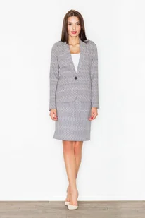 Prosta SPÓDNICA elegancka WYSOKI STAN beżowa wzór geometryczny S