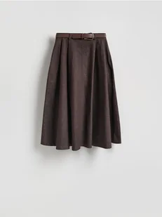 Reserved - Spódnica midi z paskiem - brązowy