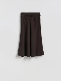 Reserved - Spódnica midi z paskiem - ciemnobrązowy