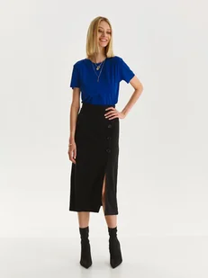 Spódnica damska Top Secret klasyczna długa. Przepełniona klasyczną elegancją i niebywałym urokiem długa spódnica damska z szeroką i praktyczną gumką w talii. Posiada ona efektowne rozcięcia u dołu z przodu, lekko po bokach i wzbogacona została ozdobnymi dużymi guzikami na jej przodzie. Wykonana ona została z bardzo przyjemnej w dotyku i trwałej dzianiny, będąc dobrym uzupełnieniem praktycznie każdej kobiecej stylizacji zarówno do pracy, jak i na co dzień. Regularna spódnica pięknie podkreśla smukłość kobiecej sylwetki.