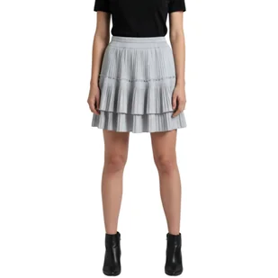 Spódnica damska John Richmond plisowana mini szara Fason: Plisowana spódnica mini Kolor: Szary Konstrukcja: Model złożony z trzech warstwowych, plisowanych falban Pas: Wygodna, elastyczna guma w talii zapewniająca idealne dopasowanie Styl: