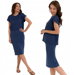 SPÓDNICA DAMSKA OŁÓWKOWA DZIANINOWA Z WISKOZY ELEGANCKA MORAJ XL BLUE