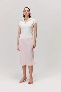Kolor: jasny róż. Materiał: miękki i lejący się materiał łatwo się pierze w standardowej temperaturze. Wzór: gładka spódnica. Długość: wirująca przy każdym ruchu spódnica do połowy łydki to klasyka kobiecej szafy. Szyte w Polsce.