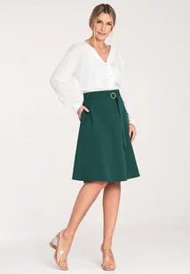 Spódnica midi z paskiem i z klamrą - spódnica zielona M1074 rozmiar L