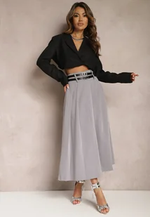 Szara Rozkloszowana Spódnica Plisowana z Dwoma Paskami z Klamrami Jaleara