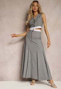 Szara Spódnica Długa Rozkloszowana High Waist Leoraia