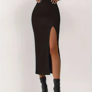 TEMU Damska spódnica midi z rozcięciem Casualowa, jednolita kolorystycznie, na każdą porę roku