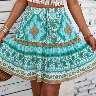 TEMU Spódnica damska z falbanką, ołówkowa spódnica w stylu boho na wakacje z kwiatowym nadrukiem i elastyczną talią