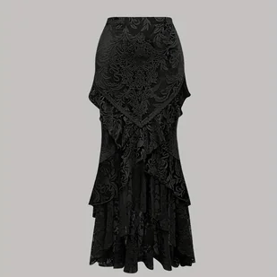 TEMU Gotycka Elegancka Spódnica w Stylu Dziesięciorzędowego Dworu z Aplikacją Koronki, Ozdobiona Tłoczonym Aksamitem z Koronkowym Dziobem.