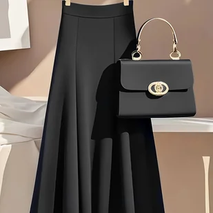 TEMU Modna Sukienka Midi z Wysokim Stanem i Efektem Drapingu, Jednolity - Idealna na Każdą Porę Roku: Wiosną, Latem, Jesień i Zimę