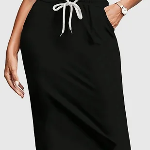 TEMU Spódnica Midi w Kolorze Czarnym dla Kobiet - Regulowany Pas ze Sznurkiem, Średnia Elastyczność, Możliwość Prania i Czyszczenia Chemicznego,