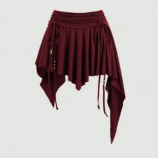 TEMU Spódnica Wysokim Stanem dla Kobiet - Asymetryczny Dekolt i Rozcięcie, Wiązana , Jednolity Burgundowy, Od Plażowej do Wieczorowej, Pranie w