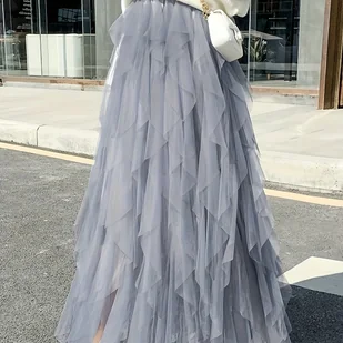 TEMU Warstwowa spódniczka baletowa z tiulu dla kobiet, wielopoziomowa, puszysta spódniczka do połowy łydki
