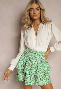 Zielona Rozkloszowana Spódnica Mini w Kwiaty z Falbankami Arial
