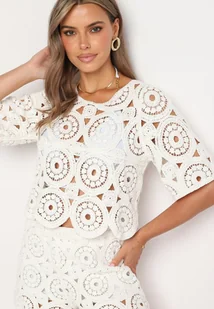 Biała Ażurowa Bluzka z Bawełny Dlinaya