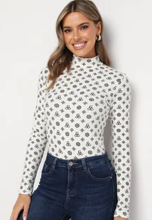 Biała Bluzka Golf z Bawełny z Geometrycznym Wzorem Heslitta